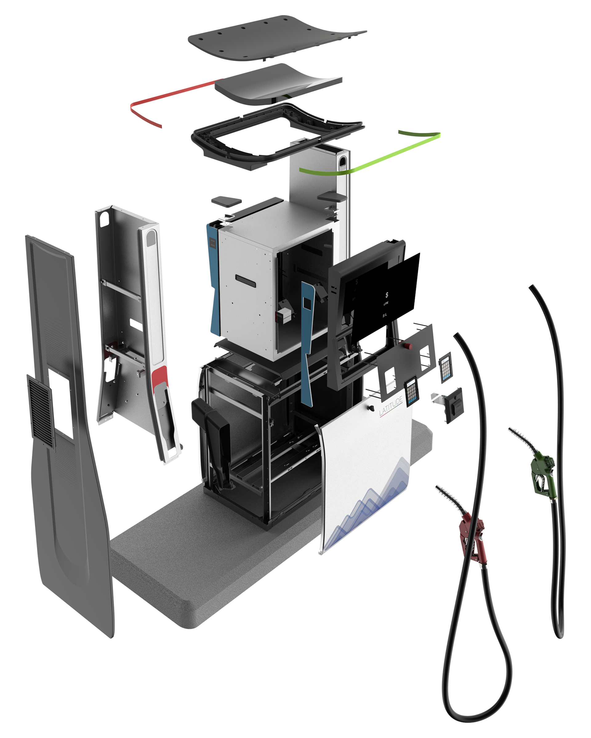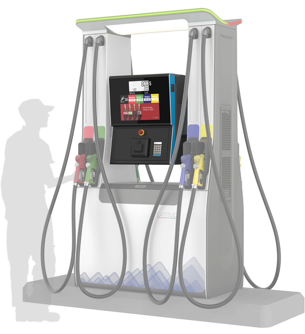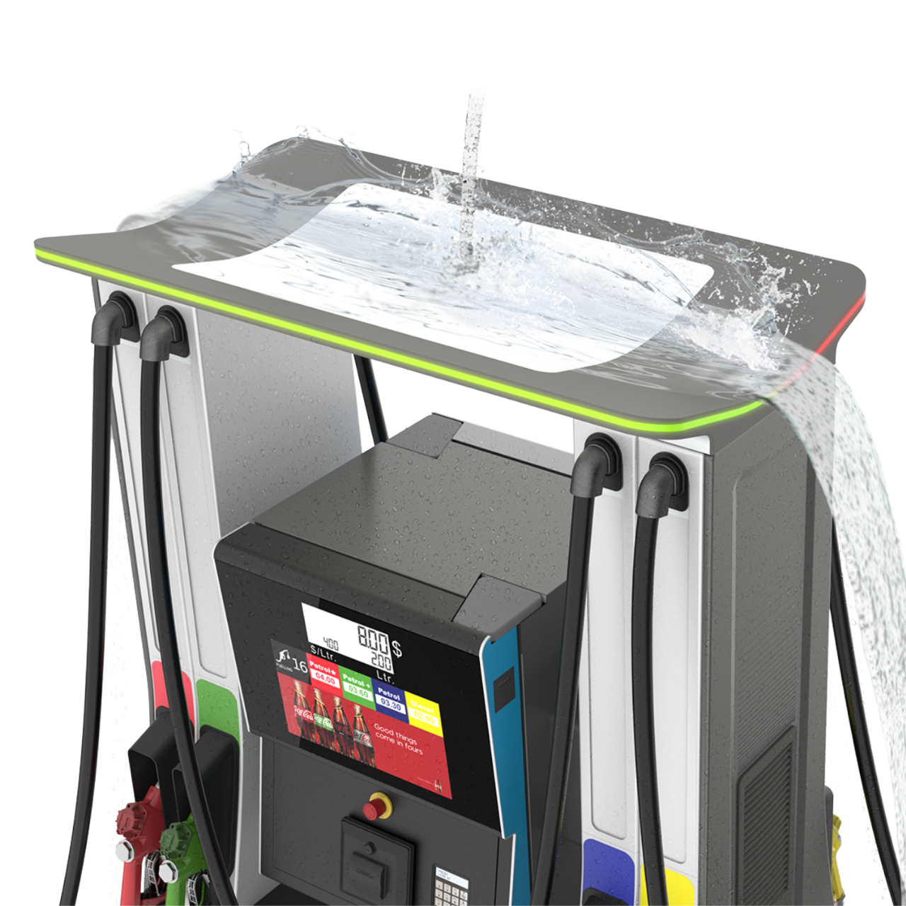 The crossfunctional team at Futuring and Gilbarco worked on design detailing with a goal of building a well designed product. The team focussed on structural design of large pressed metal parts, plastic components, lighting details and fit feel finish. This approch helped in ensuring seamless assemblies and a superior professional equipment which will ensure desired perfomance over the years.