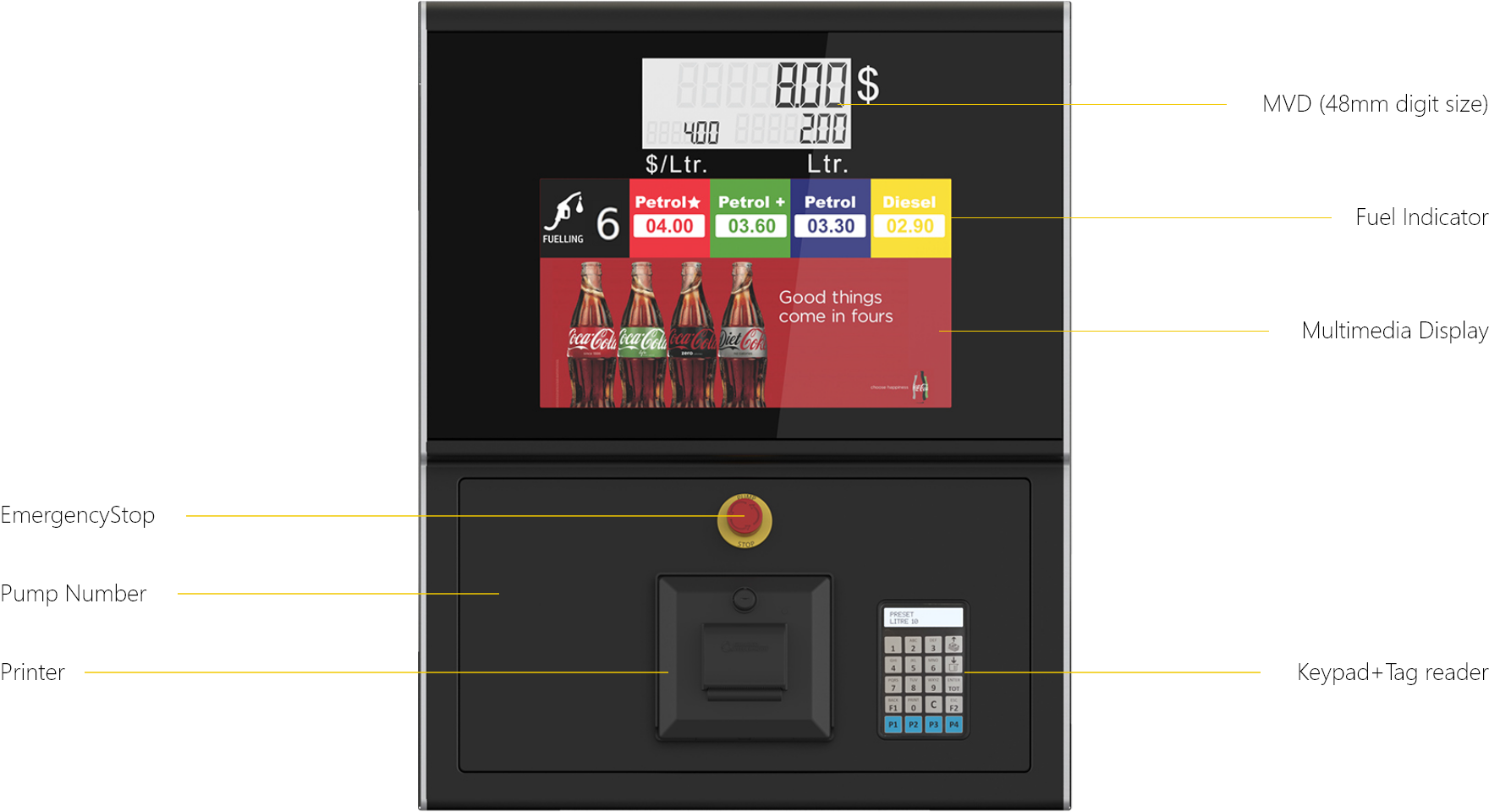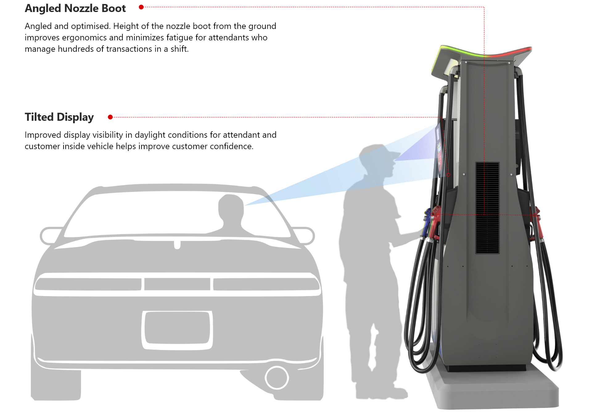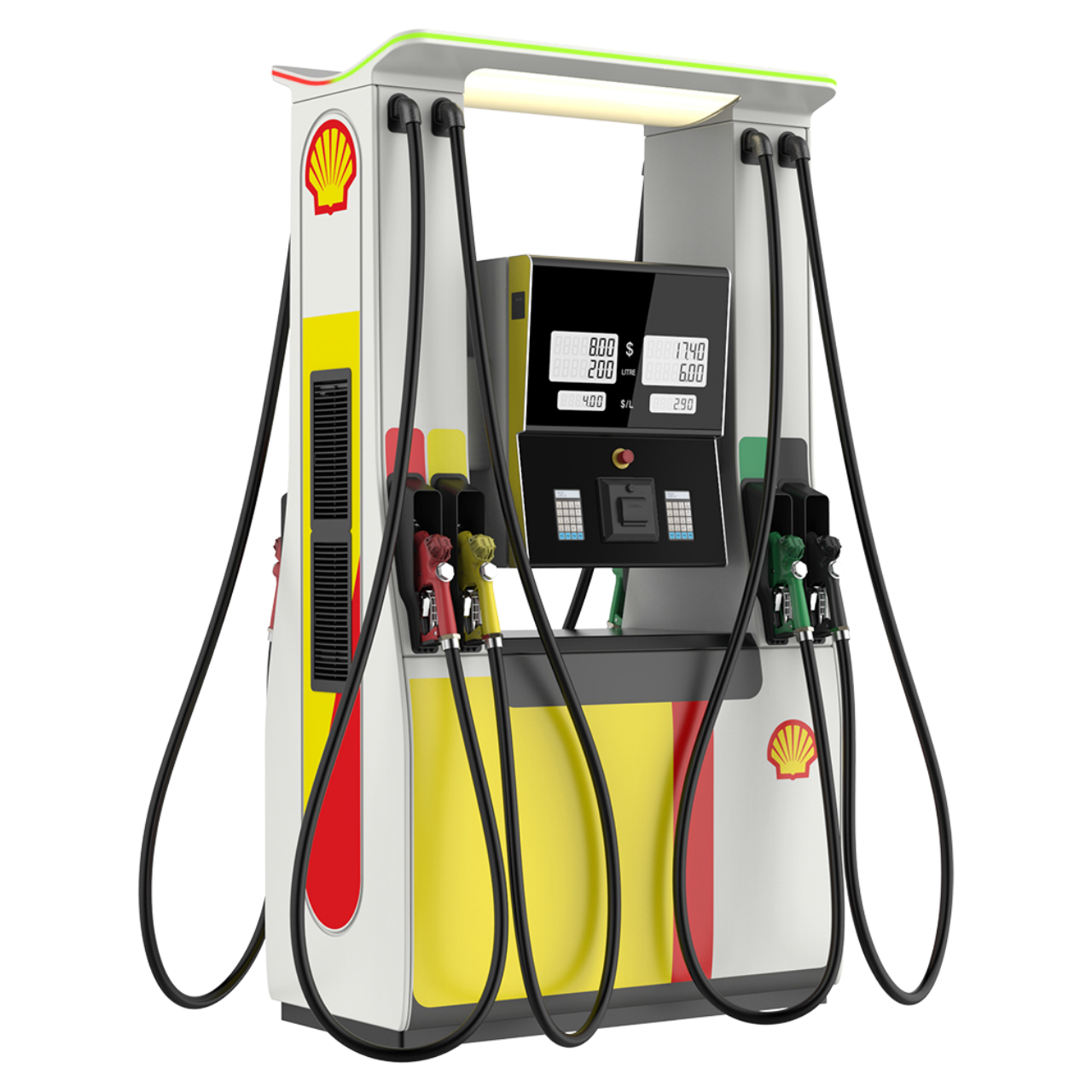 The crossfunctional team at Futuring and Gilbarco worked on design detailing with a goal of building a well designed product. The team focussed on structural design of large pressed metal parts, plastic components, lighting details and fit feel finish. This approch helped in ensuring seamless assemblies and a superior professional equipment which will ensure desired perfomance over the years.